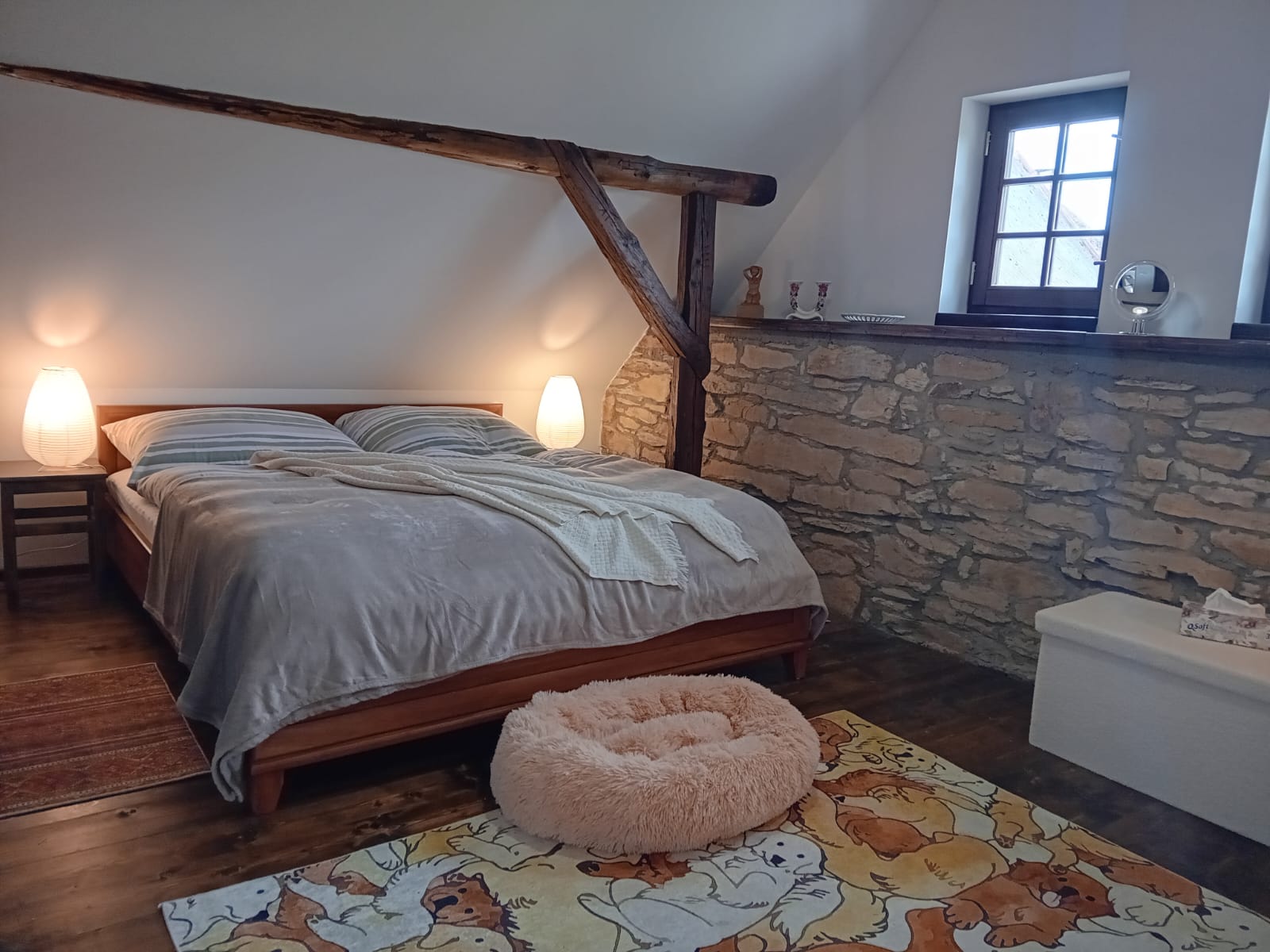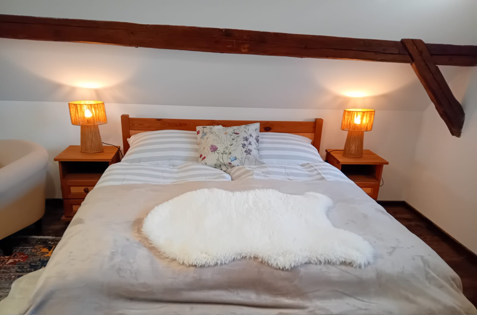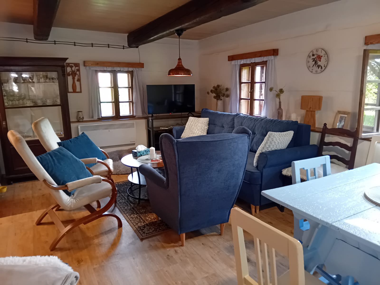 A pokud by vám počasí nepřálo, stačí zatopit v kachlových kamnech a zahrát si karty, nějakou z deskových her nebo si jen v křesle číst knížku, místa pro všechny odpočinkové aktivity je v chaloupce dost.