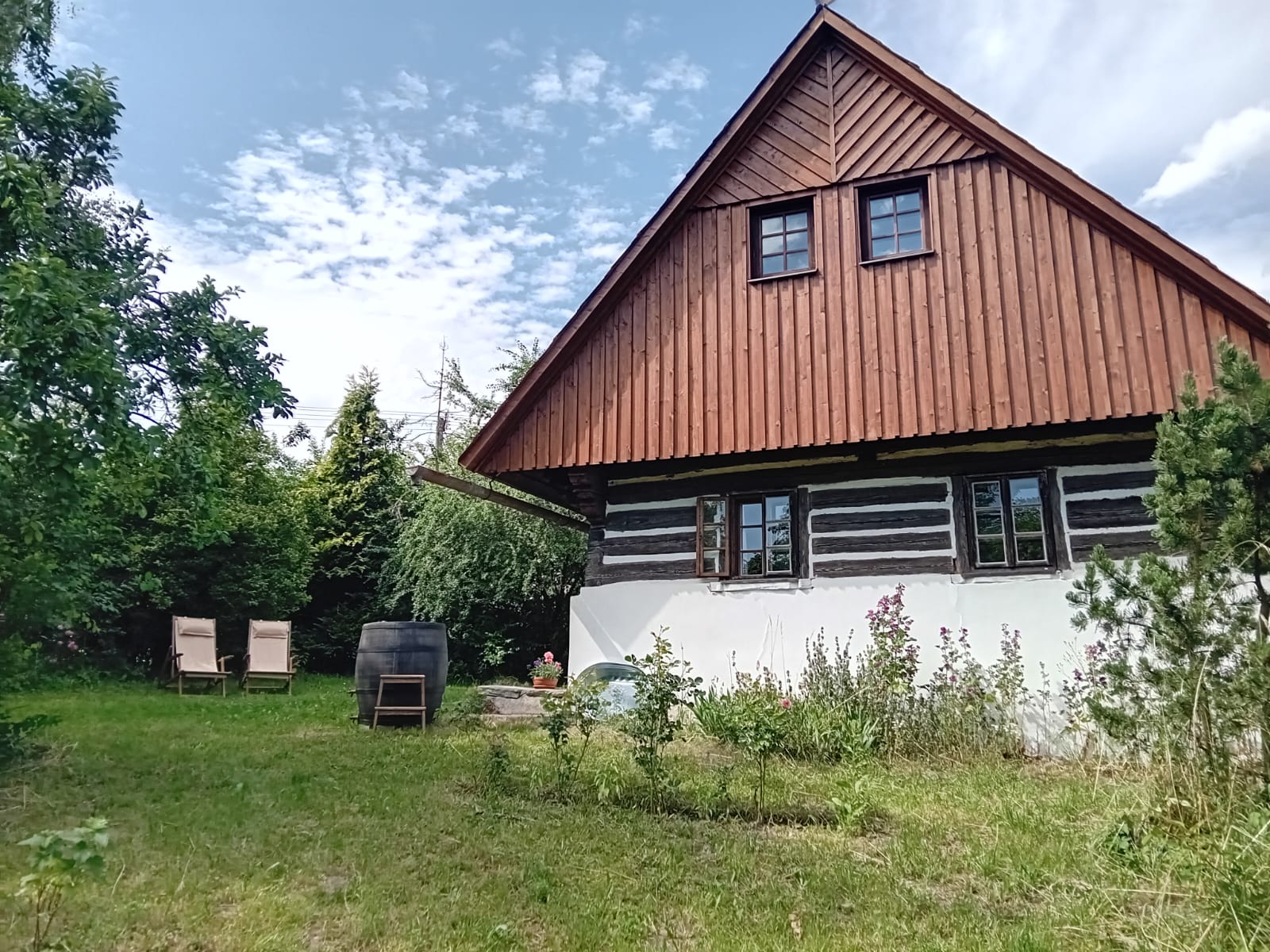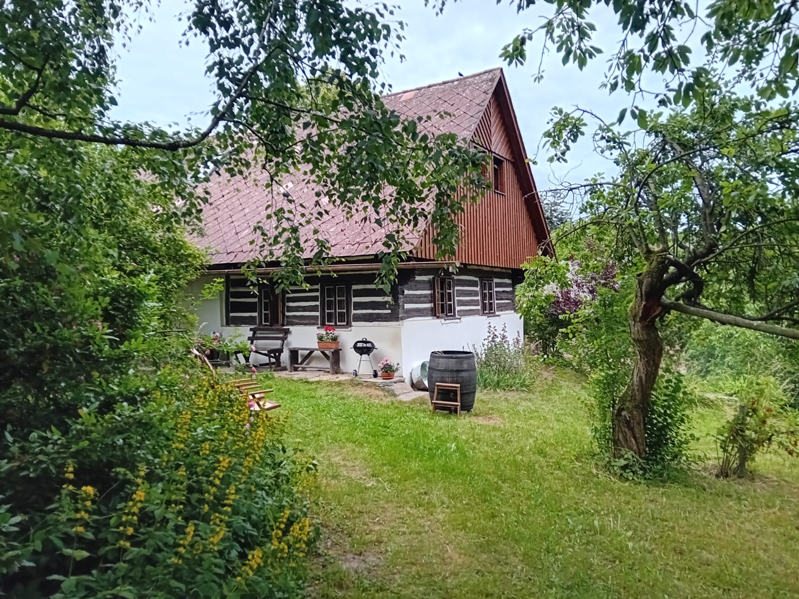 K objektu patří obrovská oplocená zahrada se sadem, kde je možné zahrát si fotbal nebo badminton nebo se jen projít a utrhnout si ovoce, které zrovna v daném okamžiku dozrává. Oplocení pozemku uvítají zejména majitelé domácích mazlíčků, kteří jsou v chaloupce vítáni.