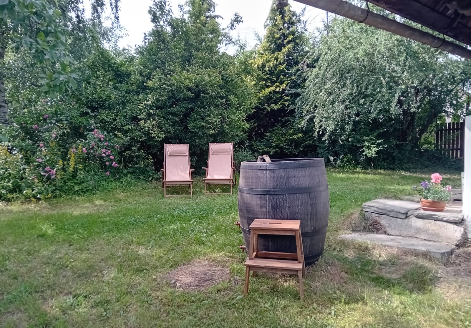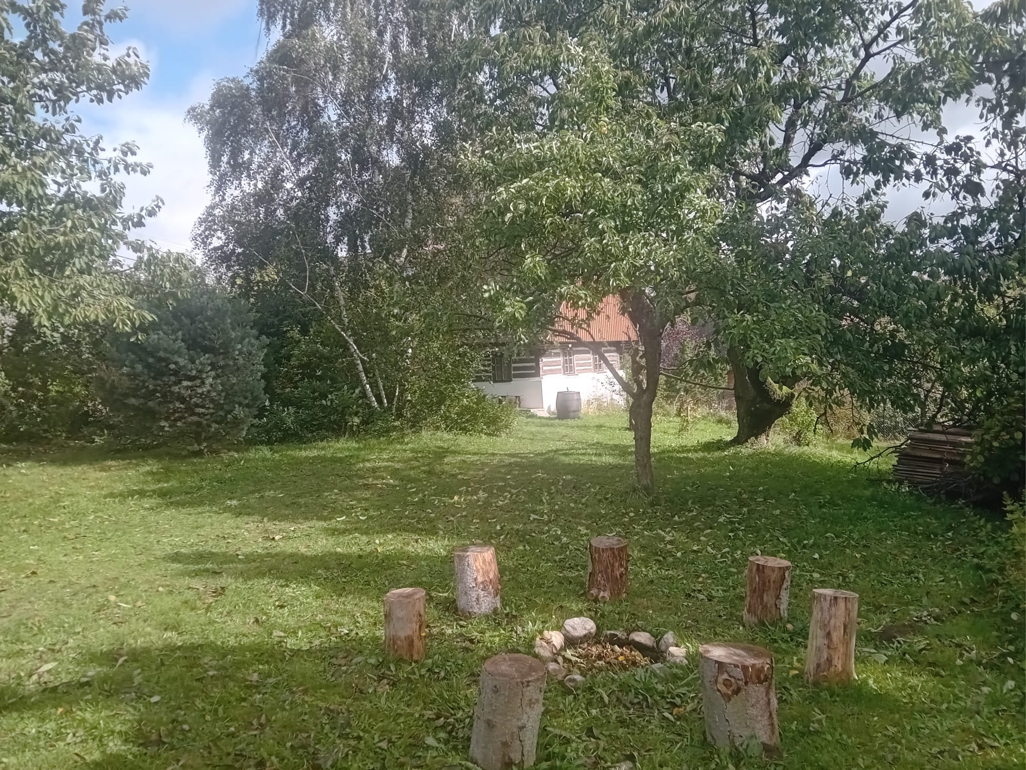 K objektu patří obrovská oplocená zahrada se sadem, kde je možné zahrát si fotbal nebo badminton nebo se jen projít a utrhnout si ovoce, které zrovna v daném okamžiku dozrává. Oplocení pozemku uvítají zejména majitelé domácích mazlíčků, kteří jsou v chaloupce vítáni.